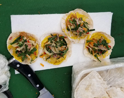 Breadfruit tortilla with green mango and papaya slaw
